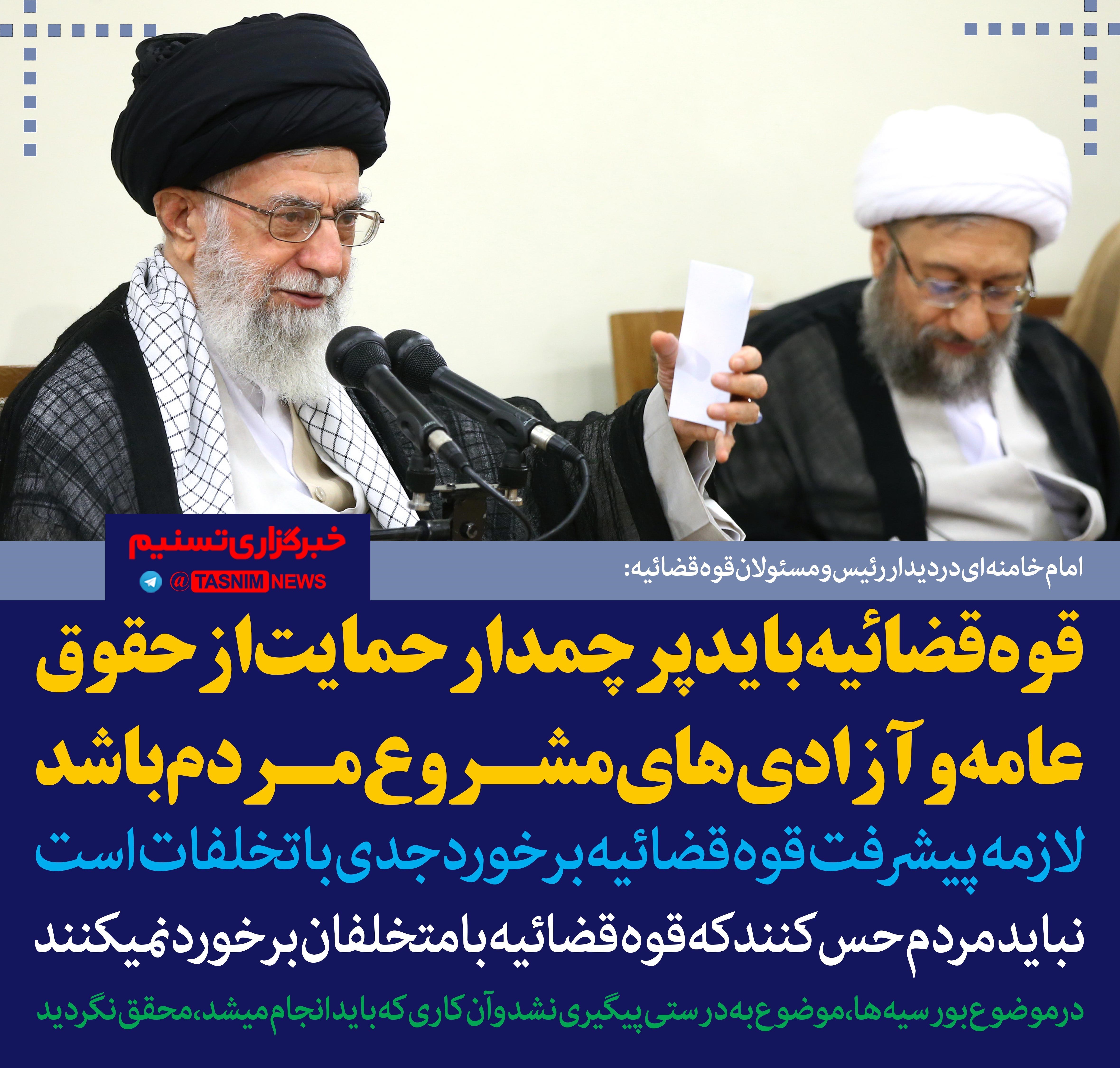 فتوتیتر/امام خامنه ای:قوه‌ قضائیه پرچمدار حمایت از حقوق عمومی و آزادی‌های مشروع مردم شود