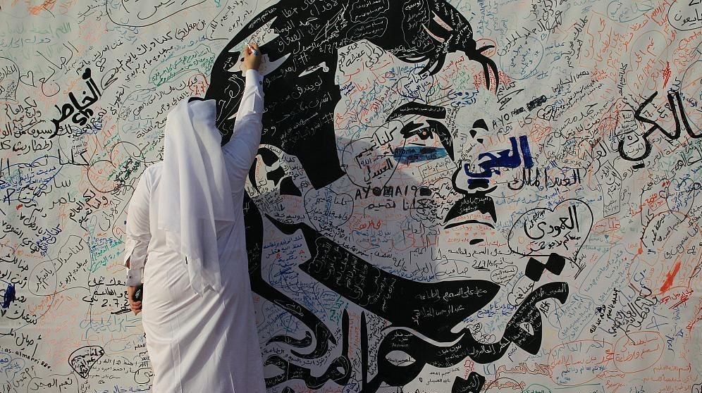 قطری‌ها برای ابراز حمایتشان از امیر این کشور، دیوارنگاره‌ای را طراحی و با هزاران امضای خود آن را تزئین کرده‌اند.