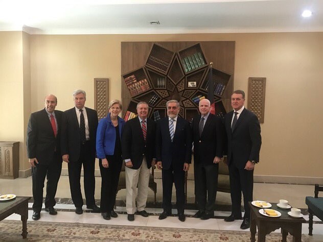 به گزارش دفتر منطقه‌ای خبرگزاری تسنیم، هیئت سنای آمریکا به ریاست «جان مک کین» سناتور ارشد جمهوریخواه پس از سفر به اسلام‌آباد و دیدار با مقامات پاکستانی روز گذشته وارد کابل شده و با اشرف غنی و عبدالله دیدار کردند.