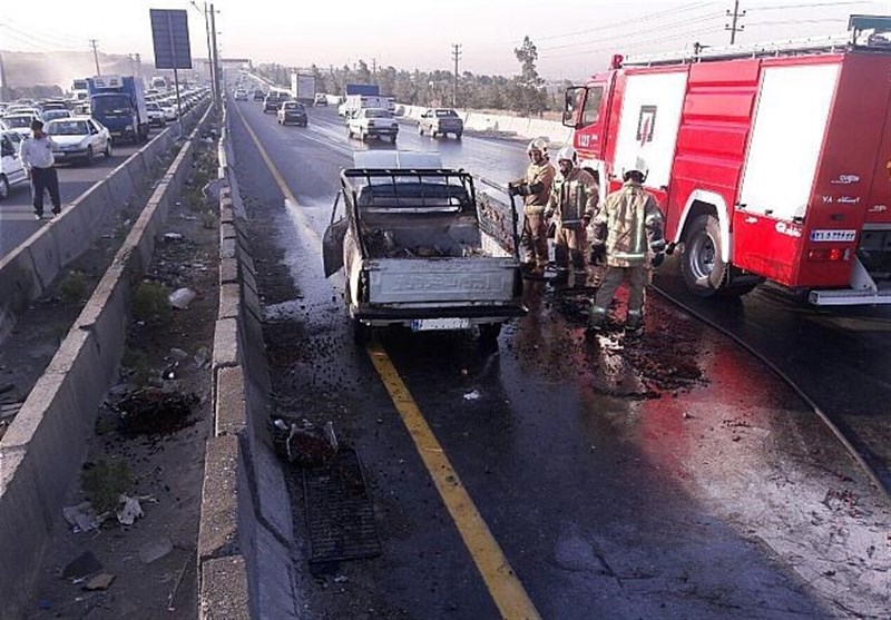 وی ادامه داد: به دنبال این حادثه، خودروی وانت به حالت نیمه واژگون متوقف شده، به یکباره آتش گرفته و بنابر گفته شاهدان، راننده این خودرو بعد از این حادثه از محل متواری شده بود.