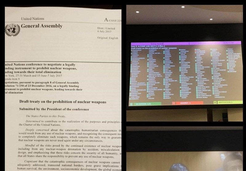 به گزارش گروه بین الملل خبرگزاری تسنیم، پیشنویس اولین معاهده منع تسلیحات هستهای با 122 رای موافق، یک رای مخالف و یک رای ممتنع تصویب شد.
