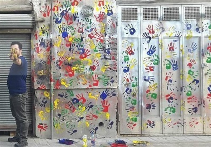 افرادی با رنگی کردن کف دست خود بر روی دیوارهای محله تاریخی و قدیمی کوچه سنگتراشها و یکی از مناطق سطح شهر را با کف دست خود رنگی کرده بودند.