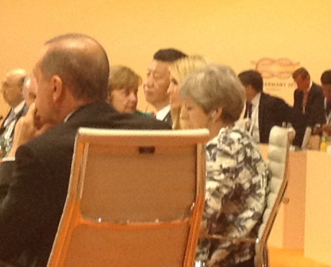 در عکسی که اسوتلانا لوکاش، از اعضای هیات روسیه در توییتر خود منتشر کرده ایوانکا میان رئیس جمهوری چین و نخست وزیر بریتانیا نشسته است. این اتفاق بر خلاف تشریفات مرسوم در چنین نشستهای مهمی است و انتقاد بسیاری از خبرنگاران و کاربران شبکههای اجتماعی را برانگیخته است.