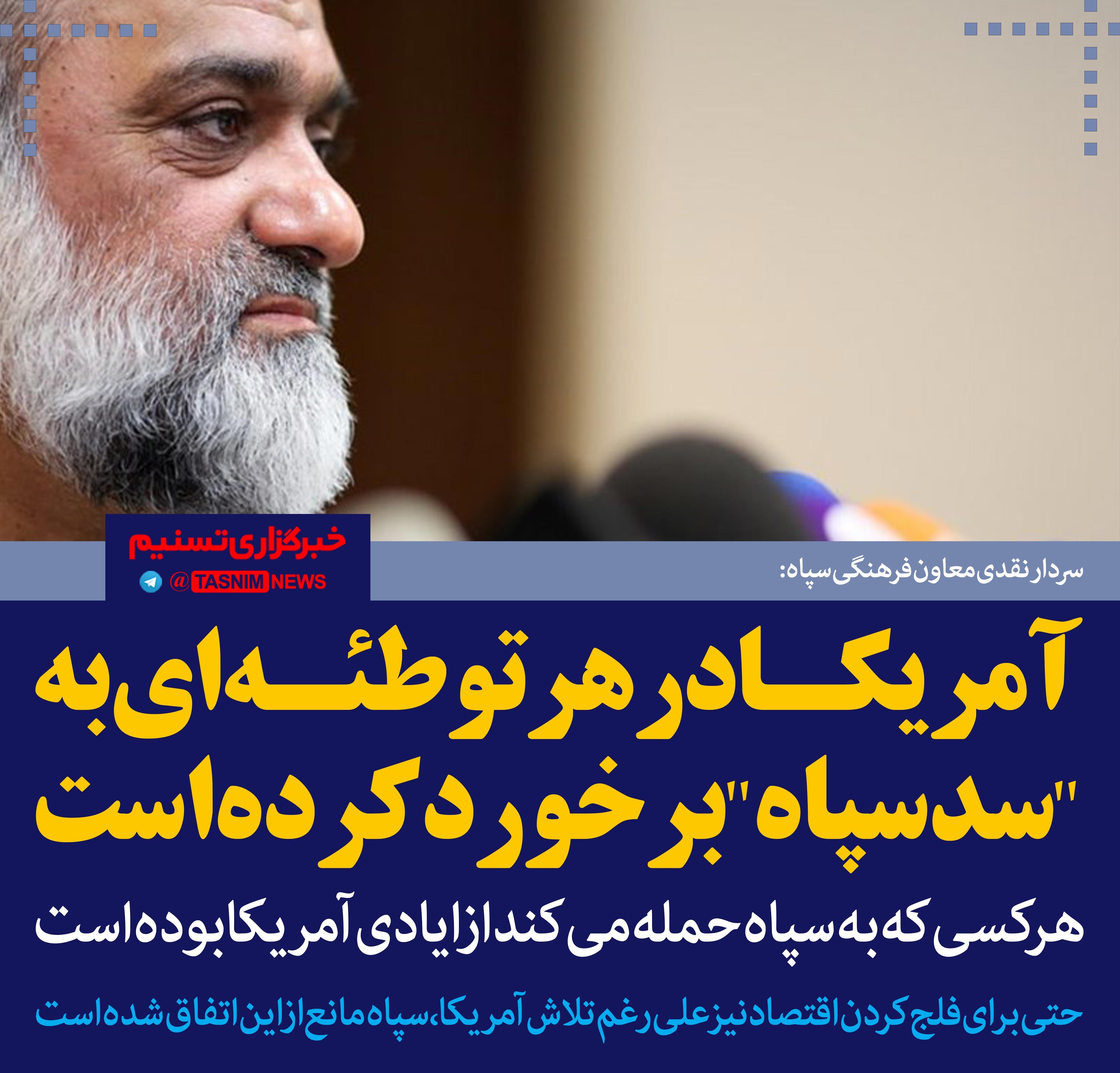 فتوتیتر/سردار نقدی:آمریکا در هر توطئه‌ای به "سد سپاه" برخورد کرده است