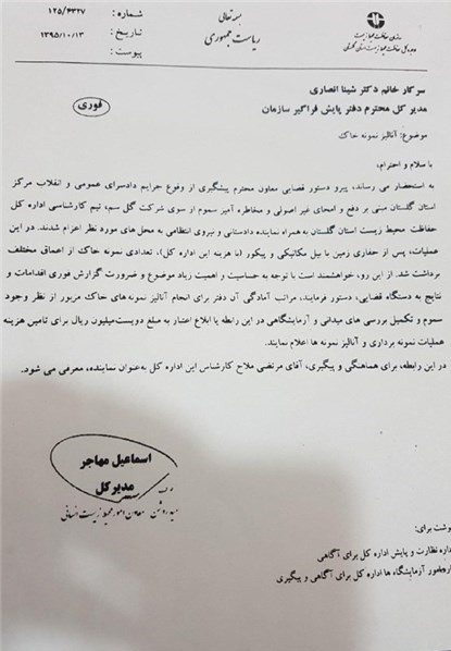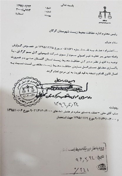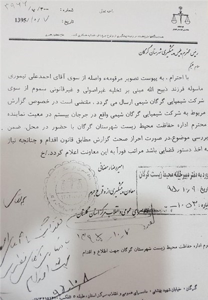 گزارش مسامحه اسماعیل مهاجر، مدیرکل حفاظت محیط زیست استان گلستان به مراجع قضایی، به صدور حکمی تحت عنوان «پاکسازی منطقه از سموم» برای شرکت مزبور منجر شده است که به نظر میرسد در مقابل تخلف انجام گرفته بسیار کم است.