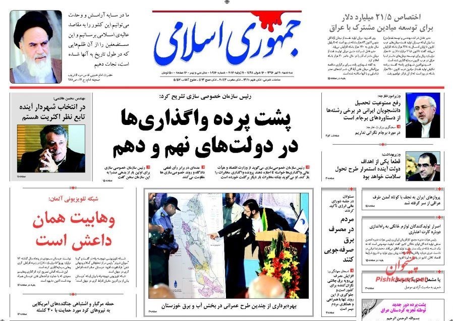 تصاویر صفحه اول روزنامه‌های سه‌شنبه 20 تیر