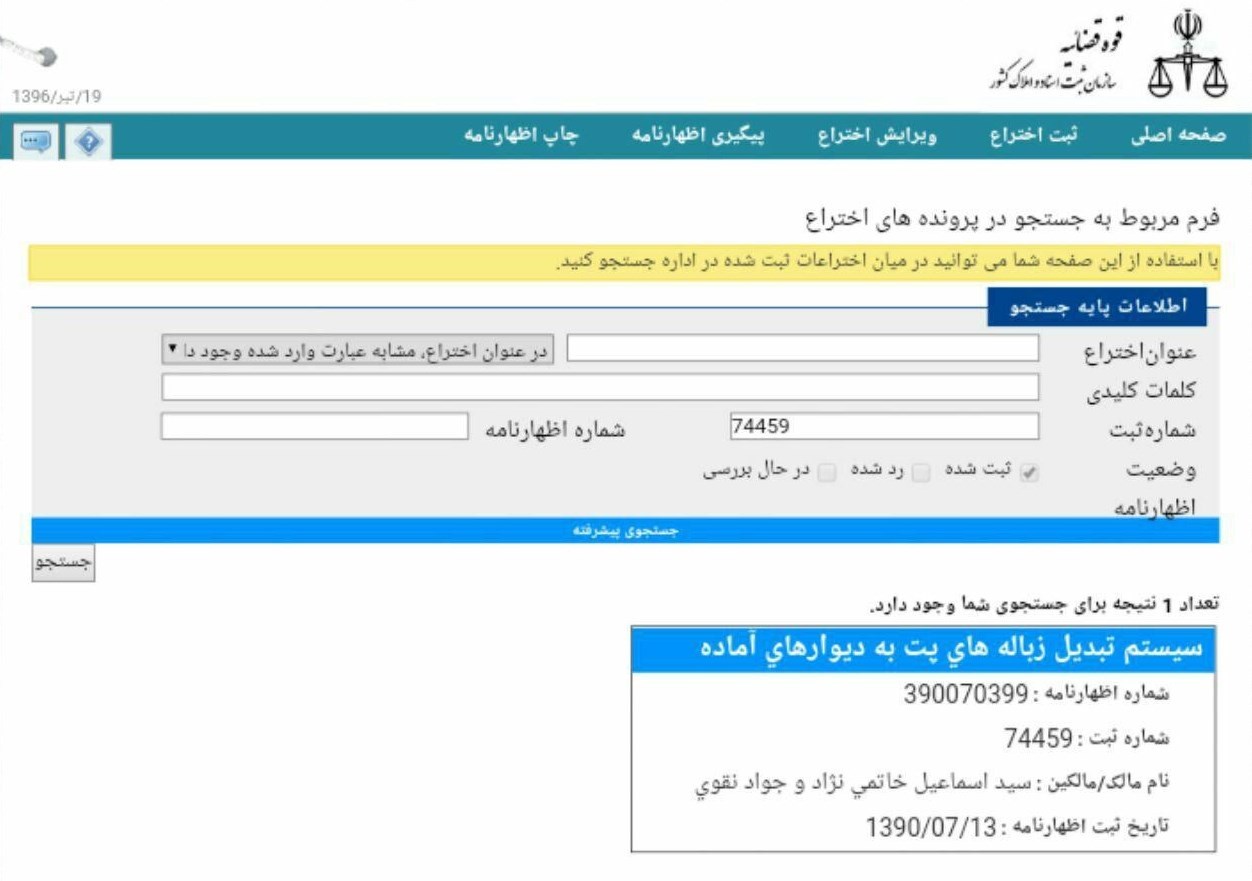 این تناقض سبب شد خبرنگار اجتماعی خبرگزاری تسنیم، به منظور ارائه اطلاعاتی دقیق به مخاطبان، شماره ثبت اختراع خاتمینژاد را که در گواهی ثبت اختراعش آمده در و وبسایت سازمان ثبت اسناد و املاک کشور قوه قضاییه جستجو کند که در کمال تعجب، نتیجه این استعلام مجازی، حکایت از عدم تطابق شماره ثبت اختراع با عنوان اختراع داشت و ماجرای این اختراع را سمت و سوی دیگری داد: در گواهی ثبت اختراعی که توسط خاتمینژاد ارائه شده و به گفته وی بر اساس آن، قراردادهایی با شهرداریها به منظور خرید اختراع، منعقد شده، عنوان اختراع، همانگونه که انتظار میرود "سامانه تبدیل بازیافت زبالههای تر شهری و شیرابهها به ریزدانههای جامد دوستدار محیط زیست" عنوان شده در حالی که شماره اختراع ثبت عنوان شده در این گواهی، مربوط به اختراعی دیگر است: "سیستم تبدیل زبالههای پت به دیوارهای آماده". اختراعی کاملا متفاوت که به جای تبدیل "زبالههای تر شهری و شیرابهها به ریزدانههای جامد دوستدار محیط زیست"، ظروف پلاستیکی را به دیوارهای پیشساخته تبدیل میکند.