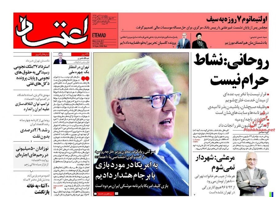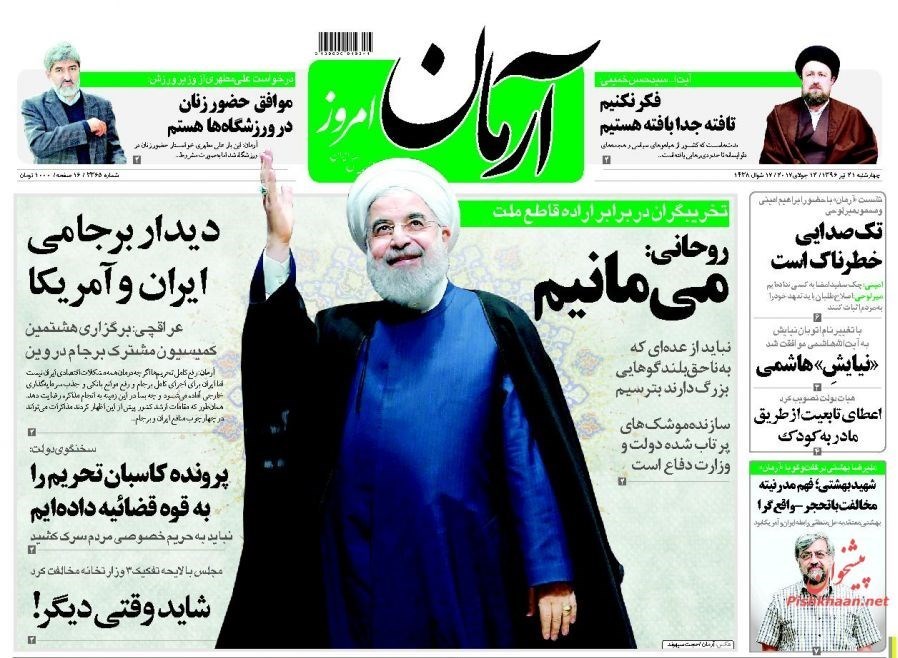 تصاویر صفحه اول روزنامه‌های چهارشنبه 21 تیر