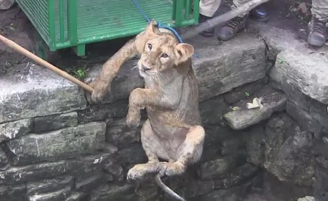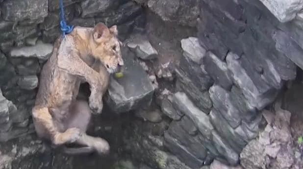 به گزارش خبرنگار اجتماعی خبرگزاری تسنیم، این توله شیر آسیایی دو ساله که در یک چاه به عمق 80 فوت (حدود 24.5 متر) افتاده بود توسط محیطبانان و افراد محلی با استفاده از یک ریسمان و یک محفظه نجات یافت.
