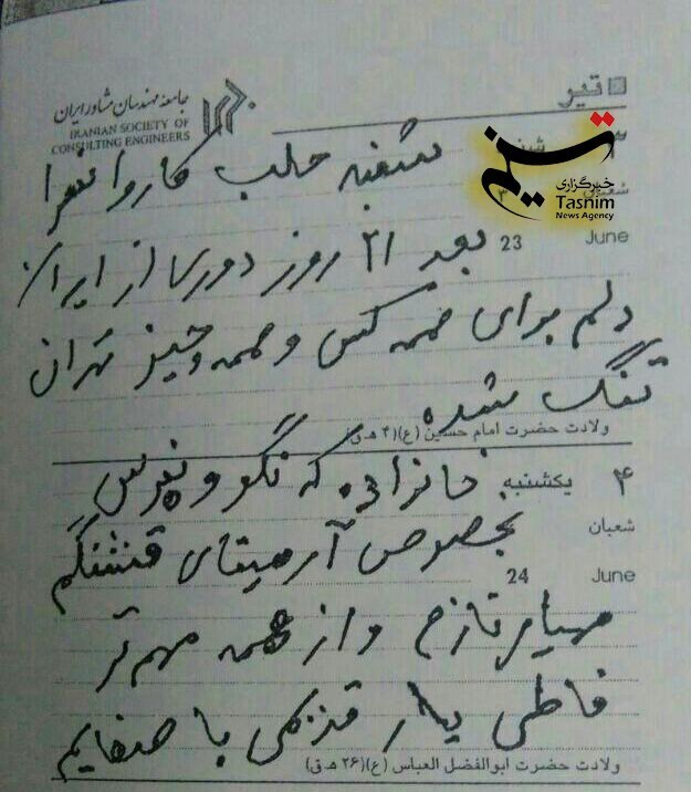 سردار شهید مدافع حرم احمد غلامی مدتی قبل از شهادتش دستنوشته ای را از خود به یادگار گذاشته است. او در این دستنوشته میگوید: «شنبه حلب کاروانسرا بعد از 21 روز دوری از ایران دلم برای همه کس و همه چیز و تهران تنگ شده. خانواده که نگو و نپرس بخصوص آرمیتای قشنگم و مهیار نازم و از همه مهمتر فاطی یار قدیمی و با صفایم»