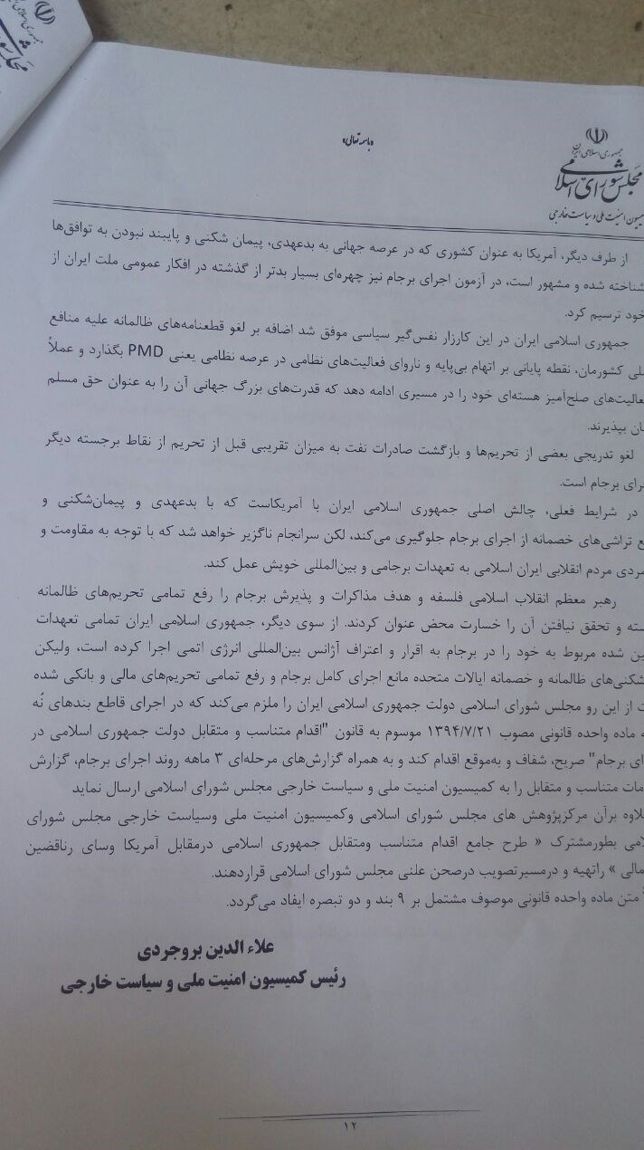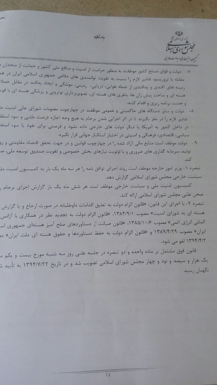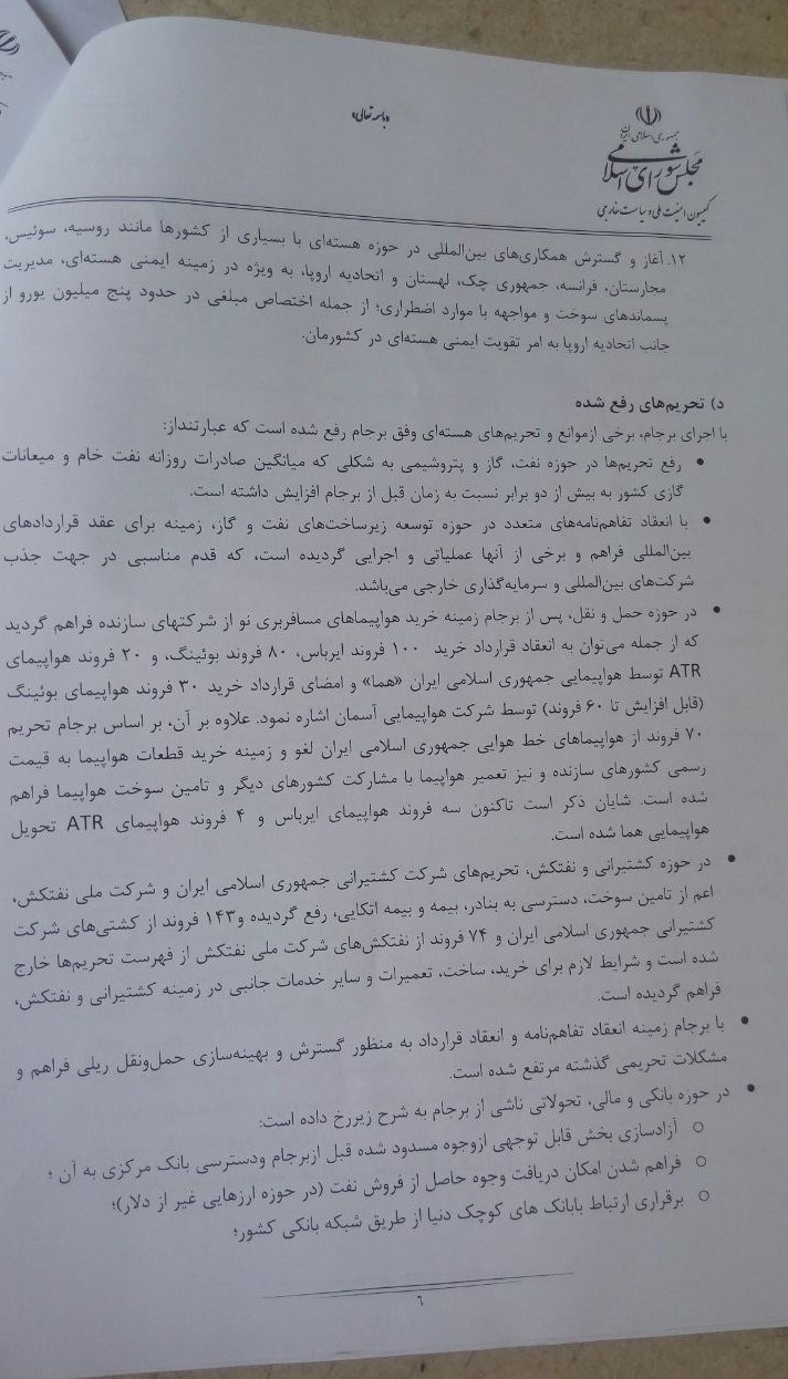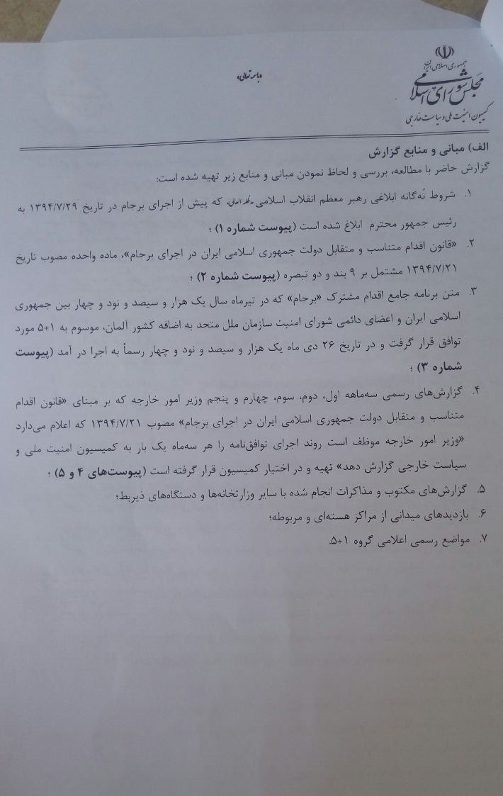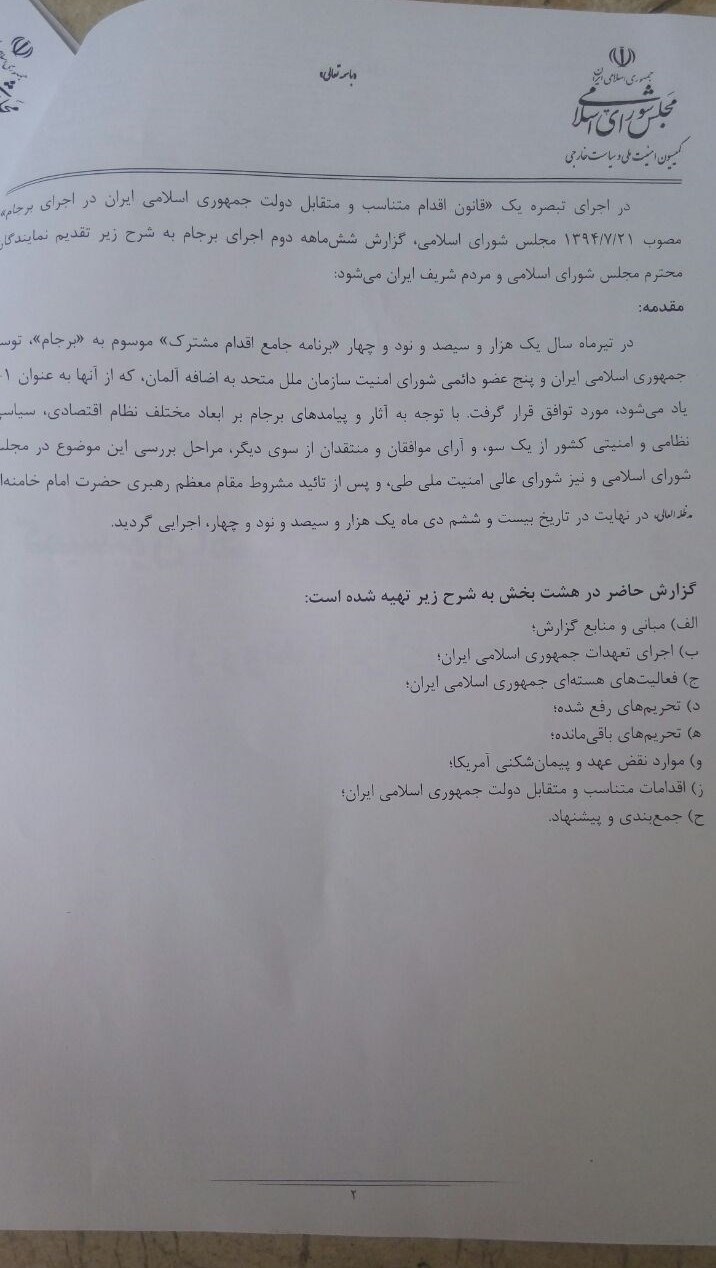 گزارش 6 ماه دوم کمیسیون امنیت‌ملی و سیاست‌خارجی مجلس شورای اسلامی از اجرای برجام نهایی شد.