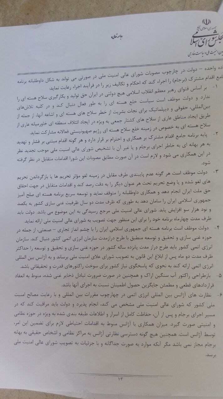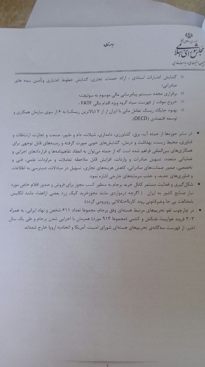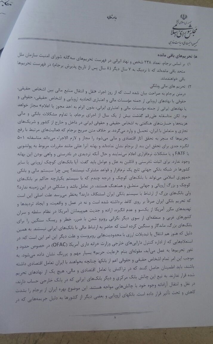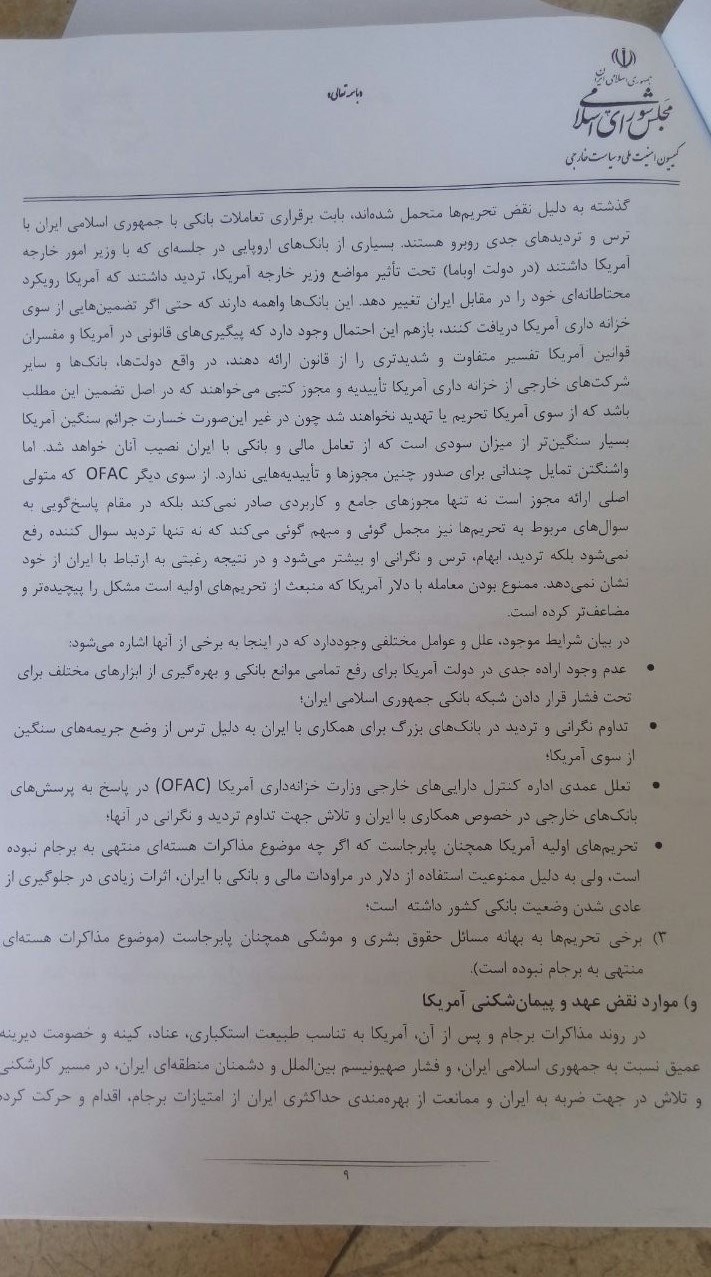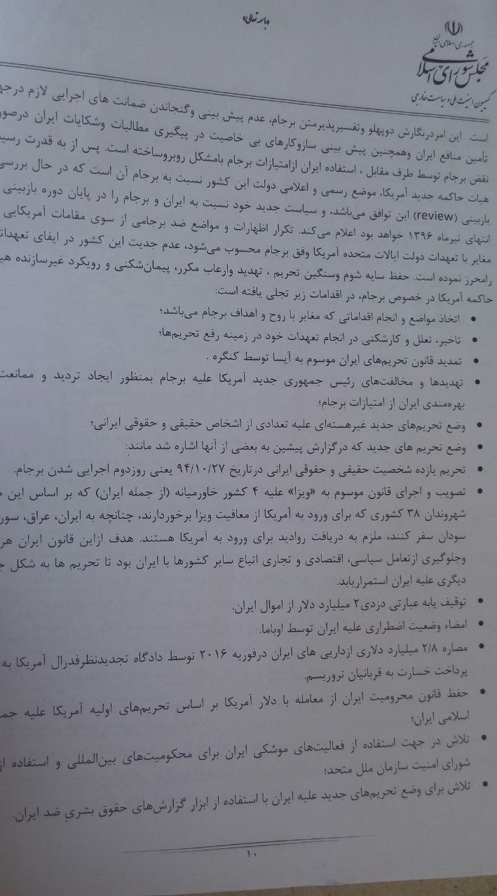 متن کامل گزارش کمیسیون امنیت‌ملی مجلس از اجرای برجام+ تصاویر