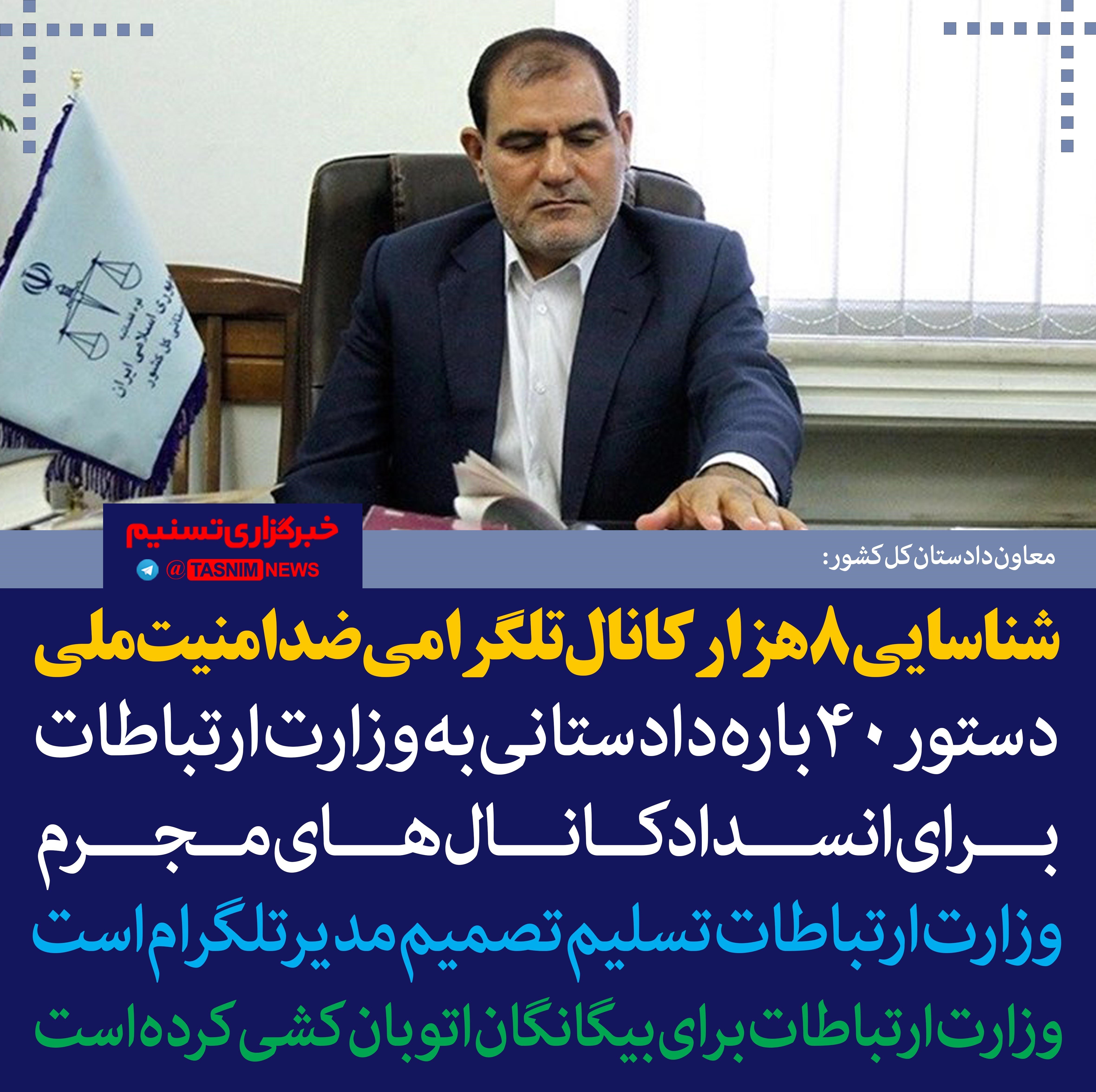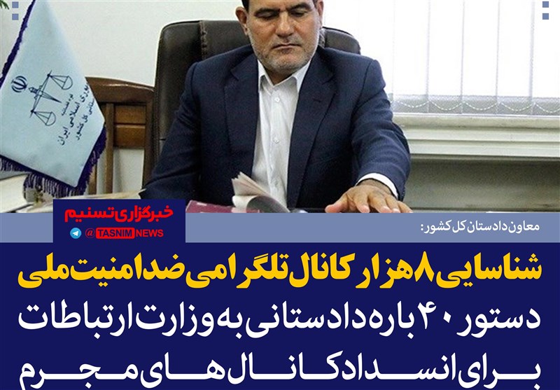 معاون دادستان کل کشور در امور فضای مجازی از شناسایی افزون بر 8 هزار کانال تلگرامی ضد امنیت کشور خبر داد و گفت که حتی دستور انسداد برخی از این کانال‌ها بیش از 40 بار به وزارت ارتباطات ارسال شده است ولی تاکنون فیلتر نشده‌اند.