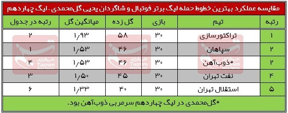 مهاجمان ذوبآهن و پیکان نیز 39 گل به ثمر رساندند تا بالاتر از مهاجمان تراکتورسازی و سپاهان که در 30 بازی، 38 بار دروازه حریفان خود را بازکرده بودند، قرار بگیرند.