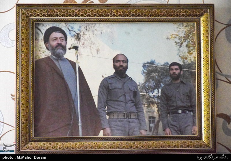 در اثنای مصاحبه تابلویی به ما نشان میدهد که تصویر شهدای خانوادهاش در آن نقش بسته است. مادر و برادر و ده نفر از اعضای خانوادهاش در موشکباران صدام در سال 65 یکجا شهید شدند.