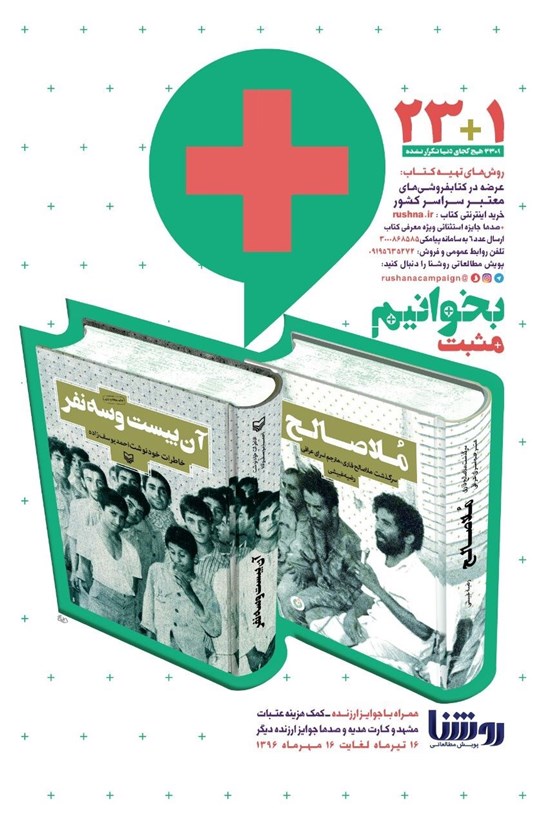 قیمت چاپ جدید «آن 23 نفر» با 5 هزار تومان کاهش از 15 هزار تومان به 10 هزار تومان و چاپ جدید «ملاصالح» هم با چهار هزار تومان کاهش از 12 هزار تومان به هشت هزار تومان رسیده است. این دوره از پویش هم مانند دورههای گذشته با جوایز ارزندهای از قبیل کمک هزینه سفر به عتبات عالیات، مشهد مقدس، کارت هدیه و صدها جایزه دیگر همراه خواهد بود.