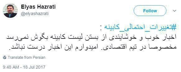 وی در صفحه اجتماعی خود نوشت: اخبار خوب و خوشایندی از بستن لیست کابینه بگوش نمیرسد؛ مخصوصا در تیم اقتصادی. امیدوارم این اخبار درست نباشد.