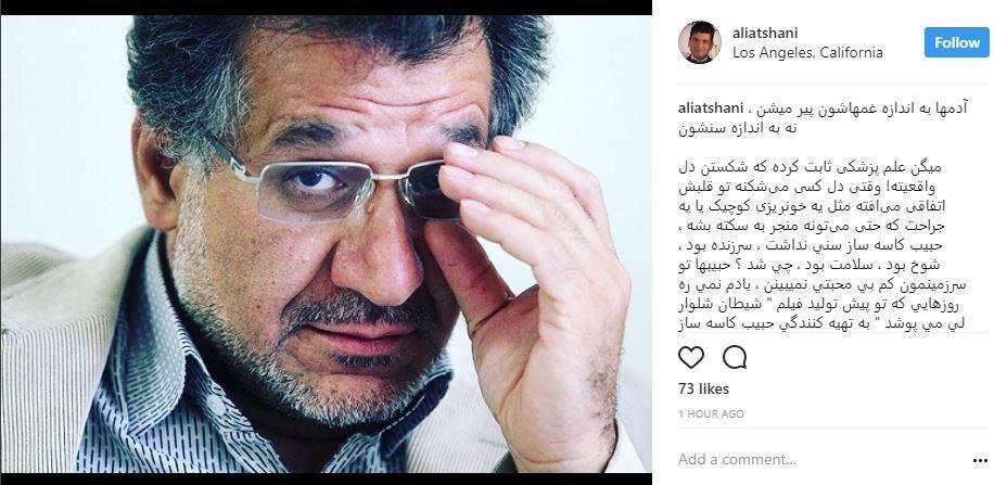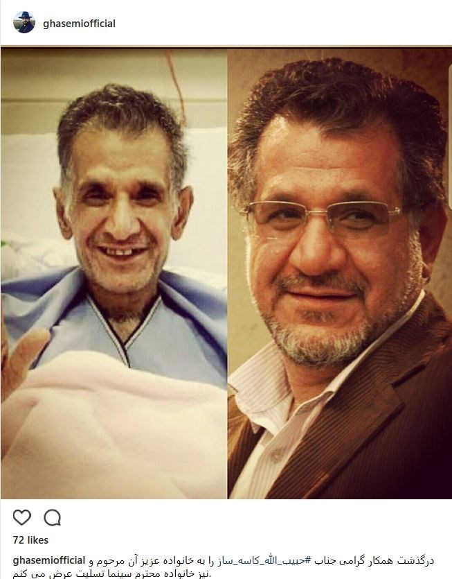 هنرمندان و بازیگران سینمای ایران نسبت به درگذشت مرحوم حبیب اللّه کاسهساز واکنش نشان دادند که ادامه مشاهده میکنید: