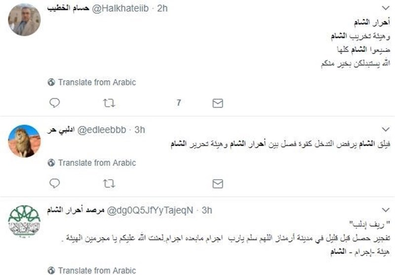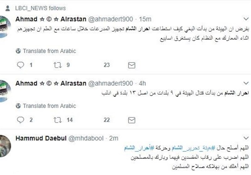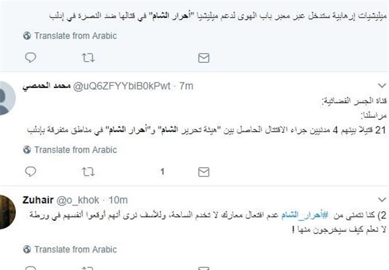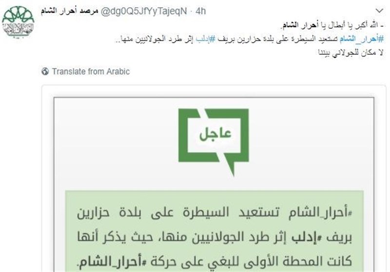 این در حالی است که احرار الشام با تانک به شهرک حزارین در جنوب ادلب حمله کرد تا آن را از جبهه النصره(تحریرالشام) پس بگیرد، احرار الشام به هلاکت ابوابراهیم کرنار یکی از سرکردگانش در درگیری با تحریرالشام در نزدیکی شهرک الهبیط اعتراف کرده است.