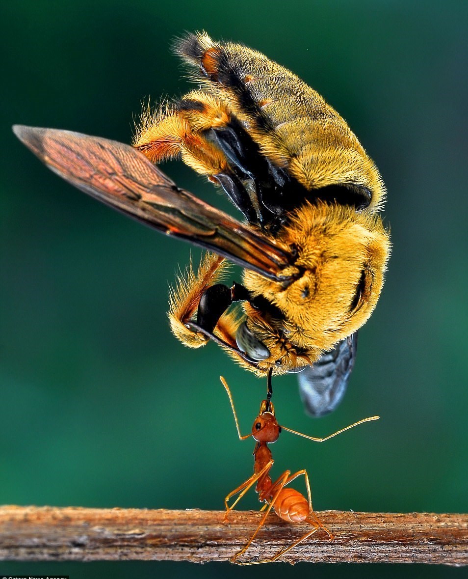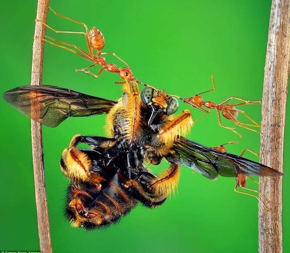بر اساس گزارش تلگراف، این مورچه فقط با استفاده از فک دهانش با بلند کردن و حمل یک زنبور عسل تا لانه‌ یک شاهکار باورنکردنی انجام داد.