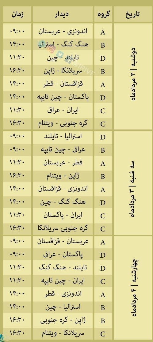 چین – تایلند: ساعت 11 و 30 بوقت ایران