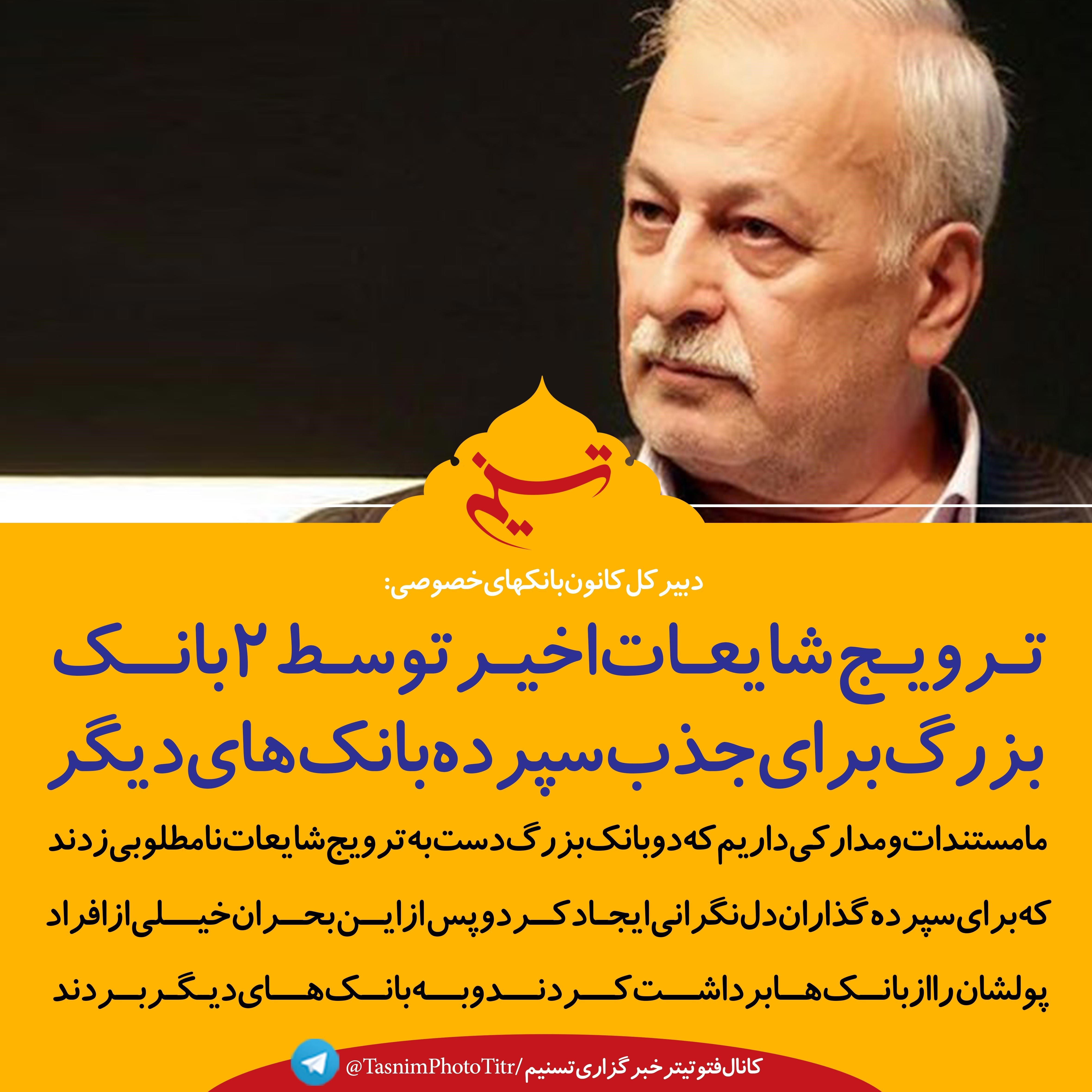 فتوتیتر/ جمشیدی:ترویج شایعات اخیر توسط 2 بانک بزرگ برای جذب سپرده بانک‎های دیگر