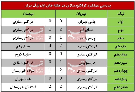 ناکامی تراکتورسازی در دیدارهای خارج از خانه هفته نخست لیگ