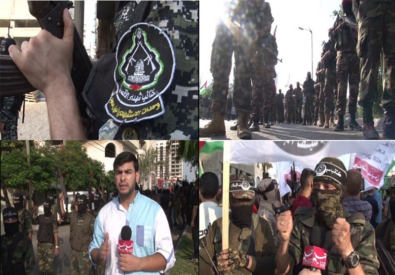 «یوسف فارس»، خبرنگار خبرگزاری تسنیم، نوار غزه: هشت شاخه نظامی گردانهای مقاومت فلسطینی همگی در مرکز شهر غزه گردهم آمدند. صدها نفر از اعضای جنبشهای حماس، فتح و جهاد اسلامی بازوان و سلاحهای خود را بهسمت آسمان بلند کرده و دوشادوش هم و با بلندترین صدا فریاد میزدند.