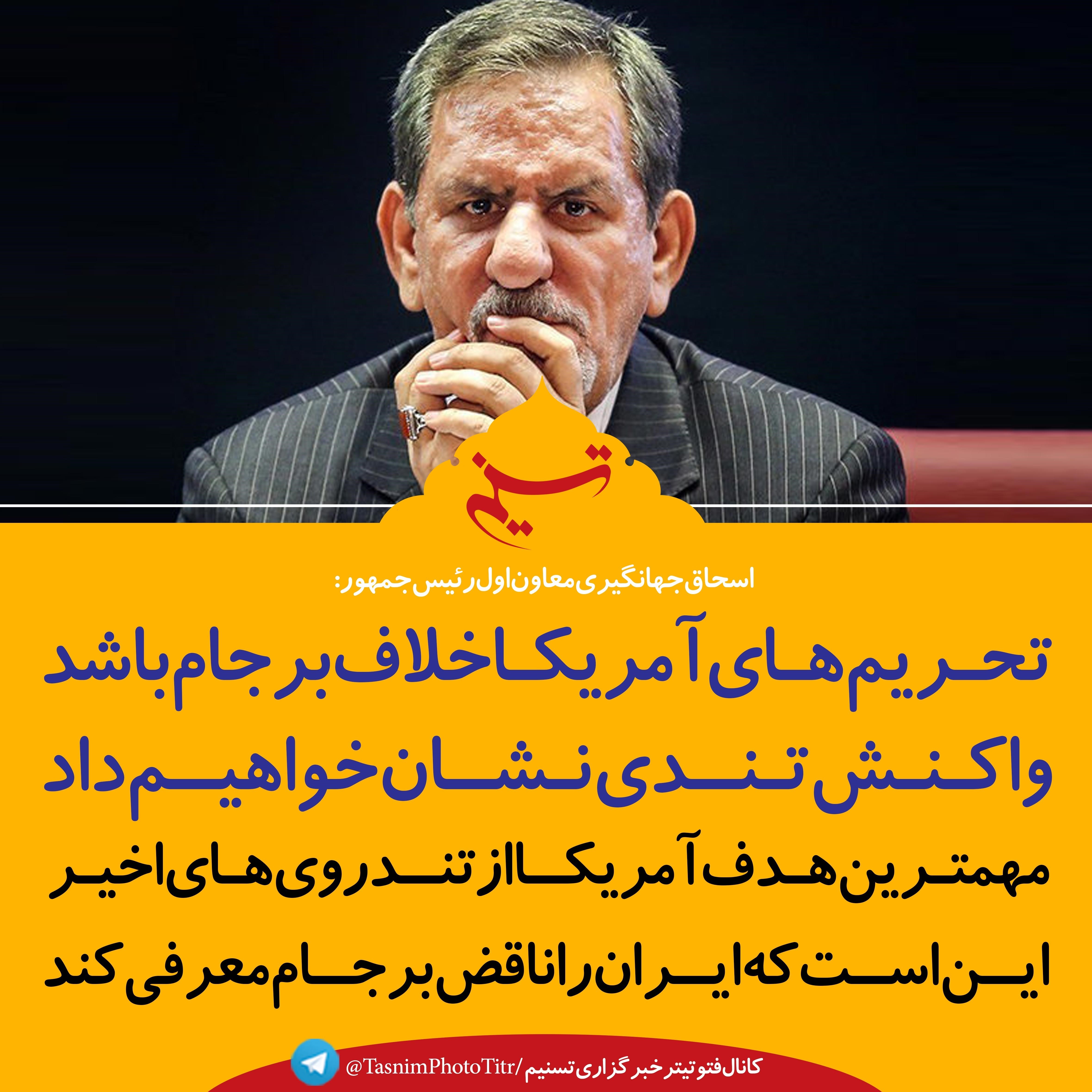 فتوتیتر/جهانگیری:تحریم‌های آمریکا خلاف برجام باشد واکنش تندی نشان خواهیم داد