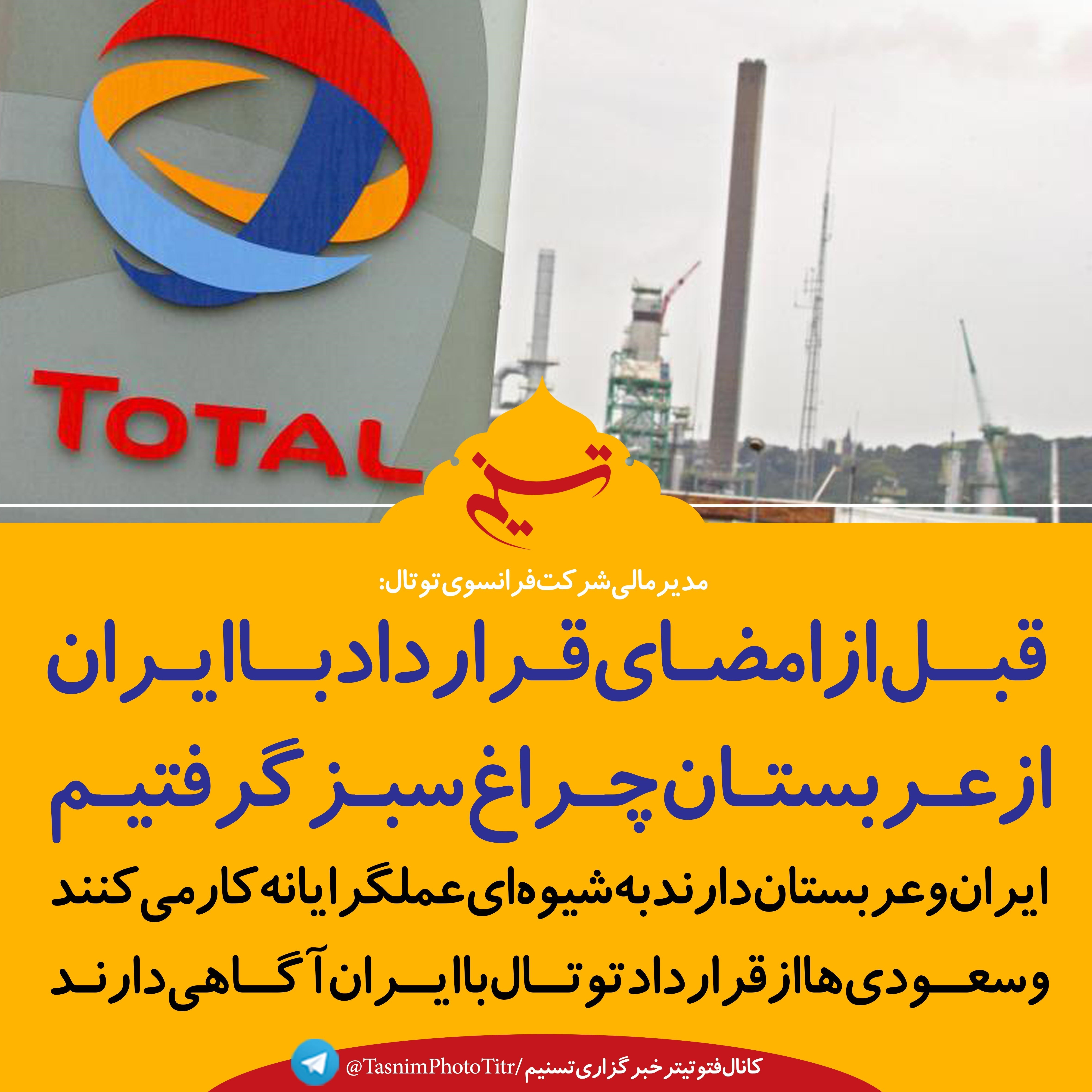 فتوتیتر/توتال:قبل از امضای قرارداد با ایران از عربستان چراغ سبز گرفتیم