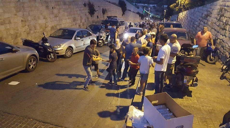 به گزارش گروه دفاتر خارجی خبرگزاری تسنیم به نقل از روابط عمومی مرکز مردمنهاد "عدالت برای صلح"، همزمان با برگزاری جشن شکست محاصره مسجدالاقصی در بیتالمقدس، بستههای غذایی و شیرینی به همت جمعی از جوانان ایرانی در بین صدها نفر از فلسطینیان که در دو هفته گذشته برای دفاع از قبله اول مسلمانان در مقابل مسجدالاقصی متحصن شده بودند، توزیع گردید.