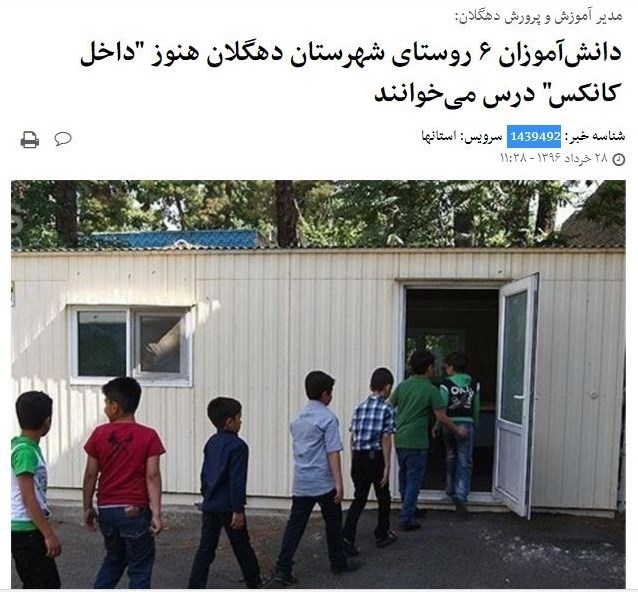 به گفته اهالی محلی و مسئولان این روستا، کلاسهای دانشآموزان این روستاها سال تحصیلی گذشته در کانکس دایر شده است و این قشر محروم در این مکانهای بدون امکانات به تحصیل ادامه میدهند.