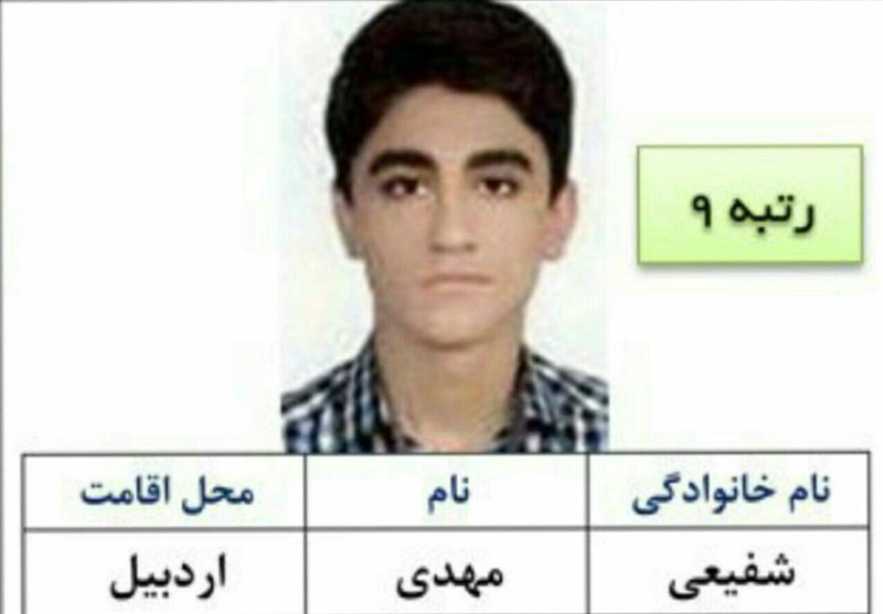 مهدی شفیعی از اهالی اردبیل در کنکور امسال توانست رتبه 9 کشوری در رشته علوم تجربی کسب کند و افتخاری برای مردم استان اردبیل باشد.