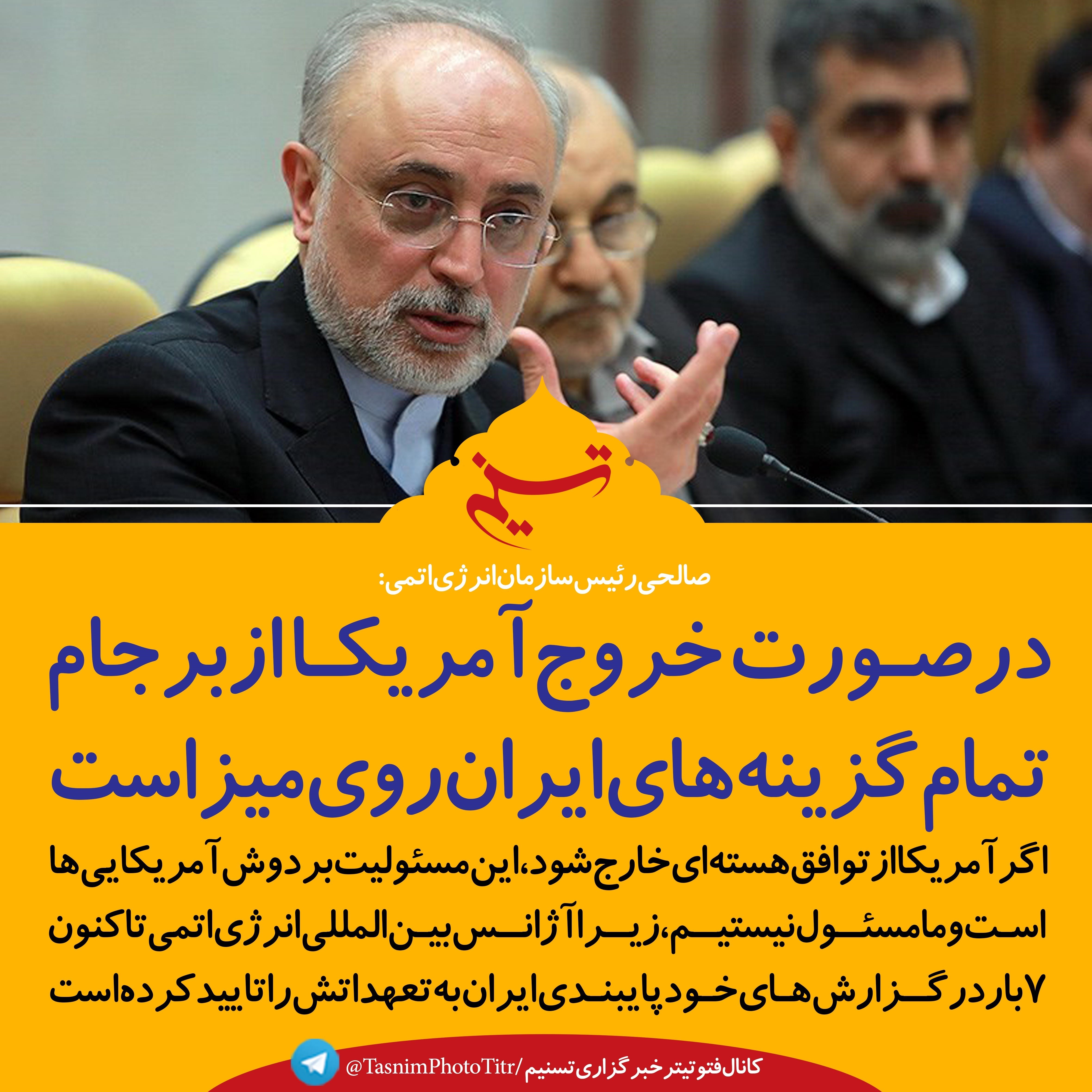 فتوتیتر/صالحی:در صورت خروج آمریکا از برجام تمام گزینه‌های ایران روی میز است