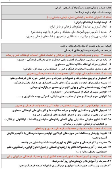 3-چالشها و مسائل مهم عرصههای فرهنگی و هنری