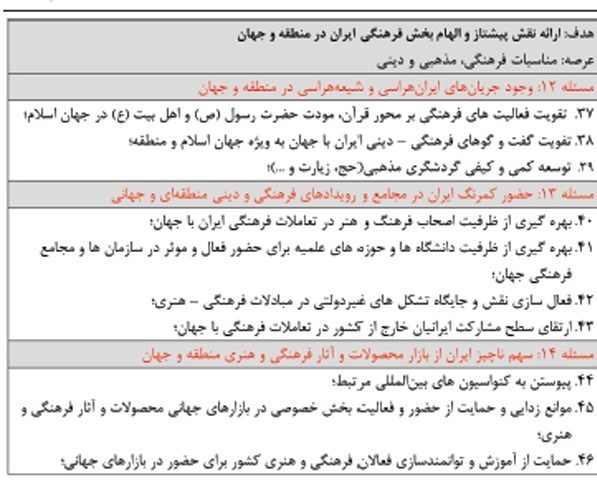 3- ارائه نقش پیشتاز و الهام بخش فرهنگی ایران در منطقه و جهان