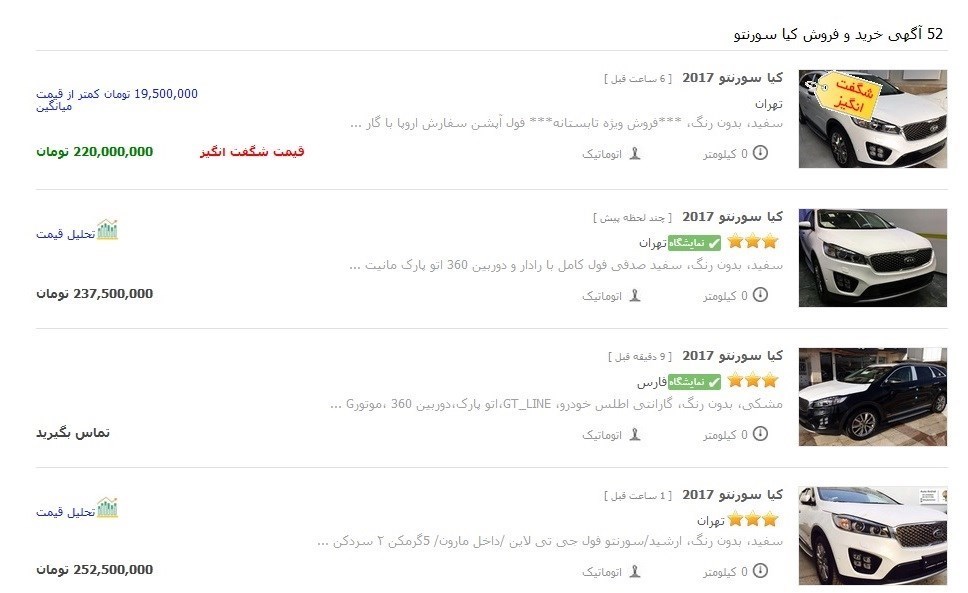 در تصویر زیر تعدادی از شرکتهای متفرقه که با پیش پرداخت های مختلف سعی در فروش محصولات خود آنهم با وعده 2017 بودن خودروها را عنوان می کنند مشاهده می کنید.