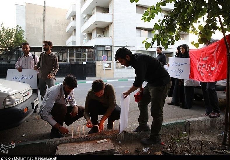 جمعی از دانشجویان با حضور مقابل سفارت افغانستان در تهران با مردم مسلمان و شیعه میرزا اولنگ افغانستان ابراز همدردی کردند.