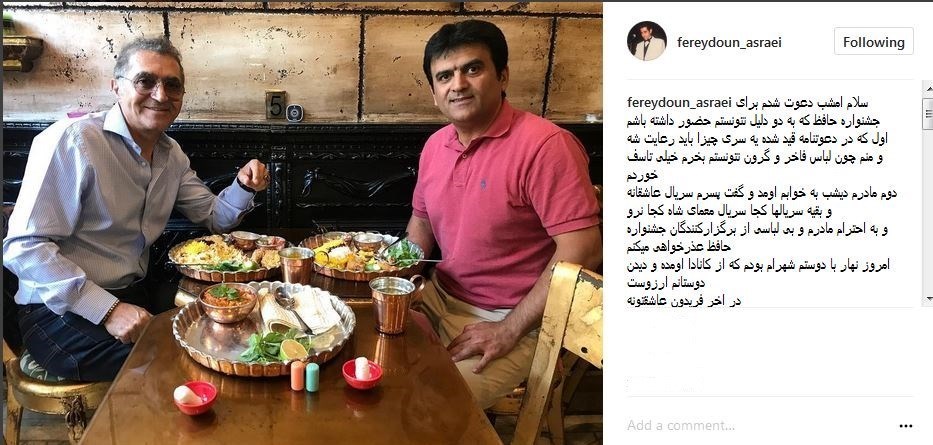 فریدون آسرایی در حالی که یکی از نامزد‌های دریافت جایزه بهترین تیتراژ تلویزیونی درجشن حافظ بود در این مراسم شرکت نکرد.