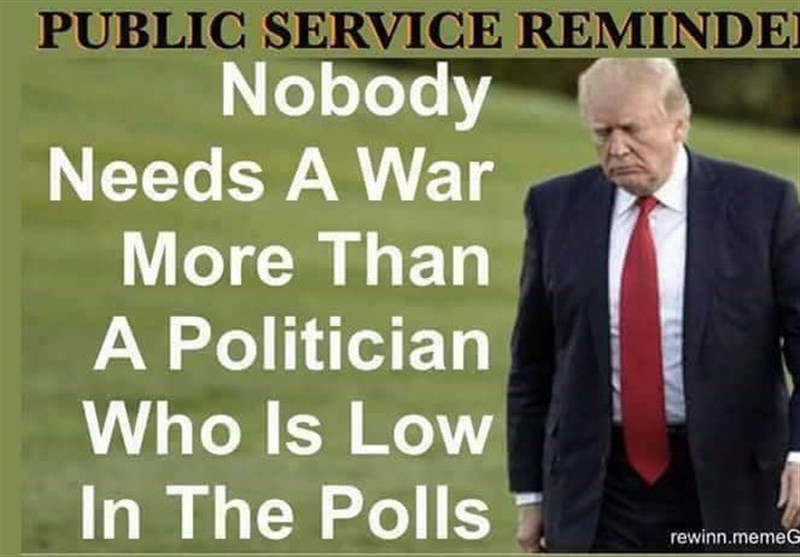 کاربر دیگر، تصویر بالا را منتشر کرده که نوشته است: «هیچکس بیشتر از سیاستمداری که در نظرسنجیها عملکرد پایینی دارد نیازمند جنگ نیست.»
