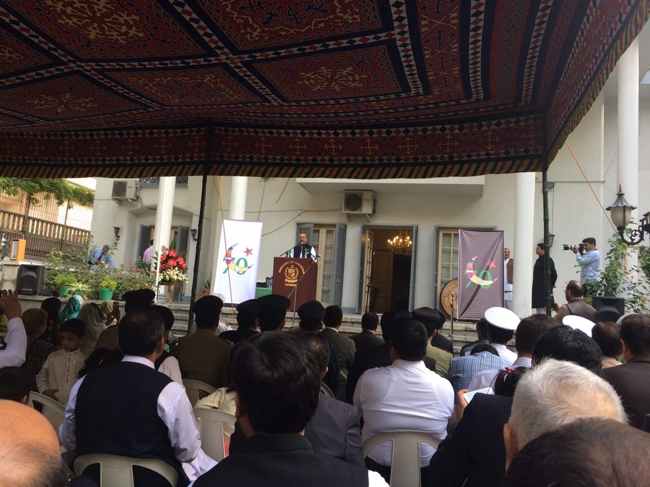 مراسم هفتادمین سالگرد استقلال پاکستان امروز دوشنبه با حضور دیپلماتها و پاکستانی های مقیم ایران در محل اقامت سفیر این کشور در تهران برگزار شد.