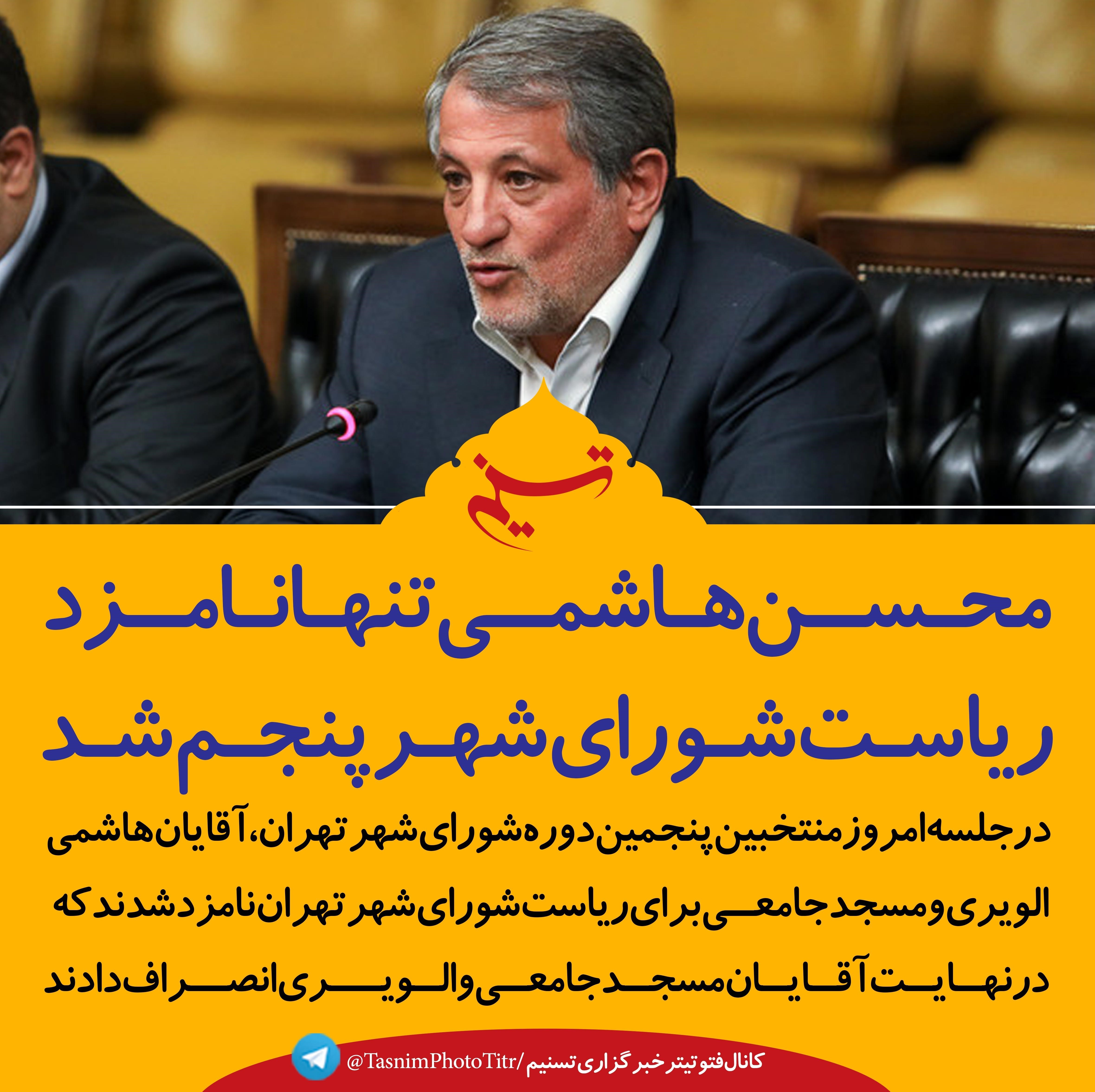 در جلسه امروز منتخبین پنجمین دوره شورای شهر تهران، آقایان هاشمی، الویری و مسجد جامعی برای ریاست شورای شهر تهران نامزد شدند که در نهایت آقایان مسجد جامعی و الویری انصراف دادند.