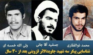 به گزارش خبرنگار فرهنگی باشگاه خبرنگاران پویا، هویت پیکر مطهر تعدادی از شهدای تازه تفحص شده دوران دفاع مقدس شناسایی شد. طبق اعلام کمیته جستجوی مفقودین ستاد کل نیروهای مسلح هویت پیکر مطهر سه تن از این شهدا متعلق به شهدای مفقودالاثر قزوینی است. «شهید محمد ذوالفقاری» ، «روحانی شهید جمشید آقاجانی» و «شهید ولیالله خمسهای» سه تن از شهدای قزوینی هستند که بیش از 30 سال پیش طی عملیاتهای رزمندگان اسلام مفقود شدند.