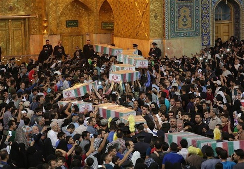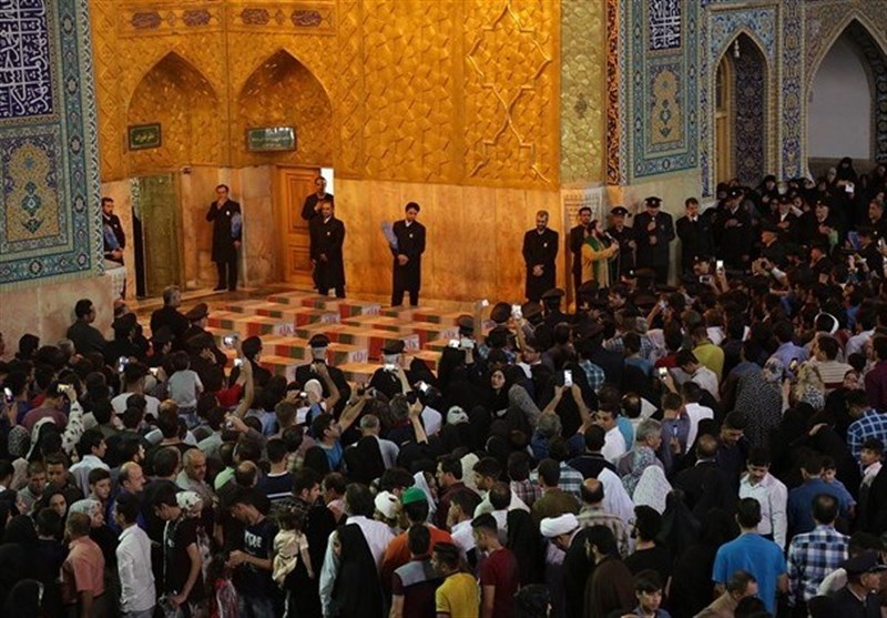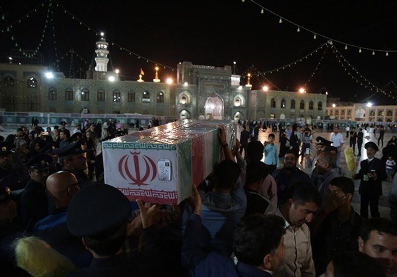 پیکر مطهر شهدای گمنام دوران دفاع مقدس در حرم منور رضوی طواف داده شد.