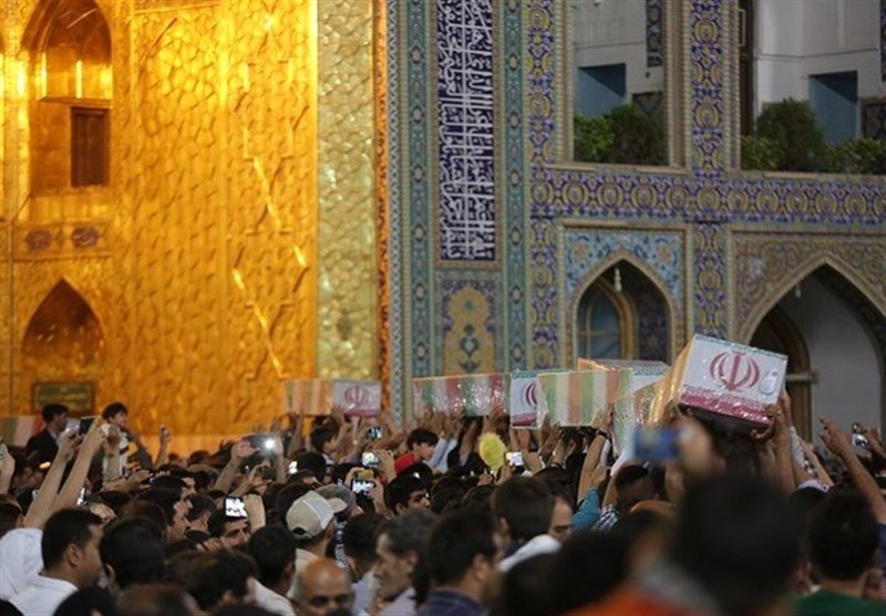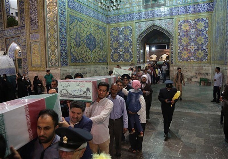 طواف پیکر شهدای گمنام دوران دفاع مقدس در حرم منور رضوی+تصاویر