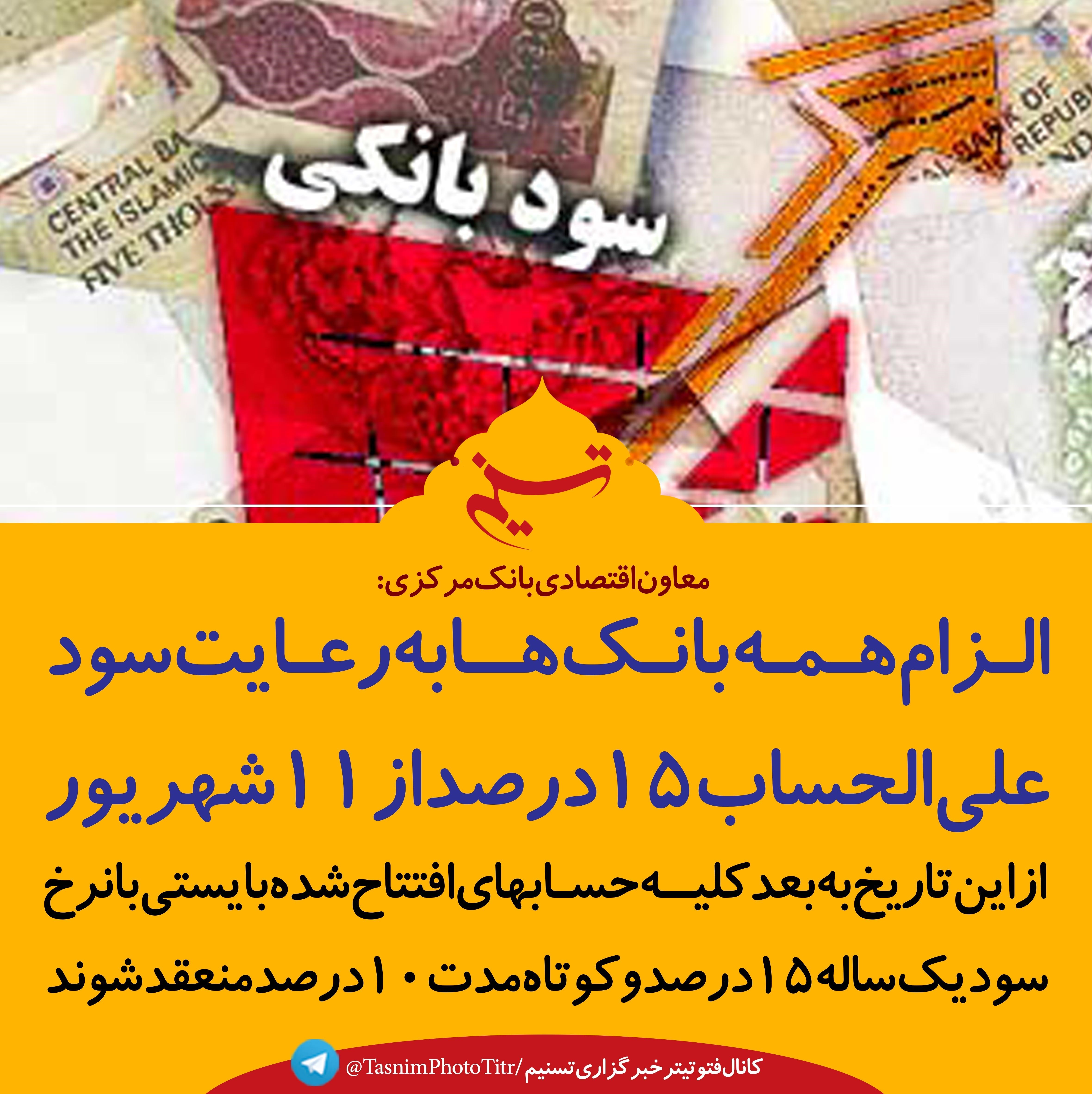 فتوتیتر/ معاون اقتصادی بانک مرکزی: الزام همه بانک ها به رعایت سود علی الحساب 15 درصد از 11 شهریور