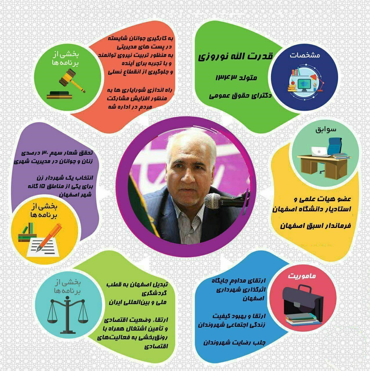 نوروزی هم اکنون عضو هیئت علمی دانشگاه اصفهان و مدیر گروه حقوق دانشگاه اصفهان است. در این گزارش با سوابق علمی، پژوهشی، سیاسی و اجرایی شهردار جدید اصفهان آشنا میشویم: