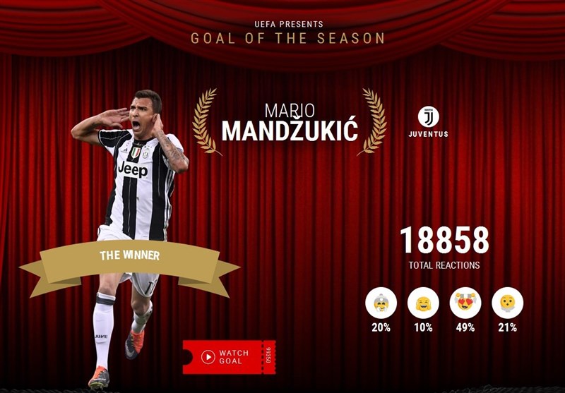 گل ماریو ماندزوکیچ با کسب 26 درصد آرای کاربران بالاتر از گلهای موسی سو بازیکن فنرباغچه برابر منچستریونایتد در مرحله گروهی لیگ اروپا با 25 درصد آرا و گل کاسمیرو، هافبک برزیلی رئال مادرید برابر ناپولی در مرحله یک هشتم نهایی فینال لیگ قهرمانان اروپا با 20 درصد آراء، به عنوان زیباترین گل فصل انتخاب شده است.