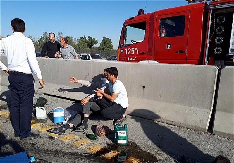تصادف پراید با سرنشینانی که مشغول تعمیر خودرو بودند/ مصدومیت 4 نفر + تصاویر