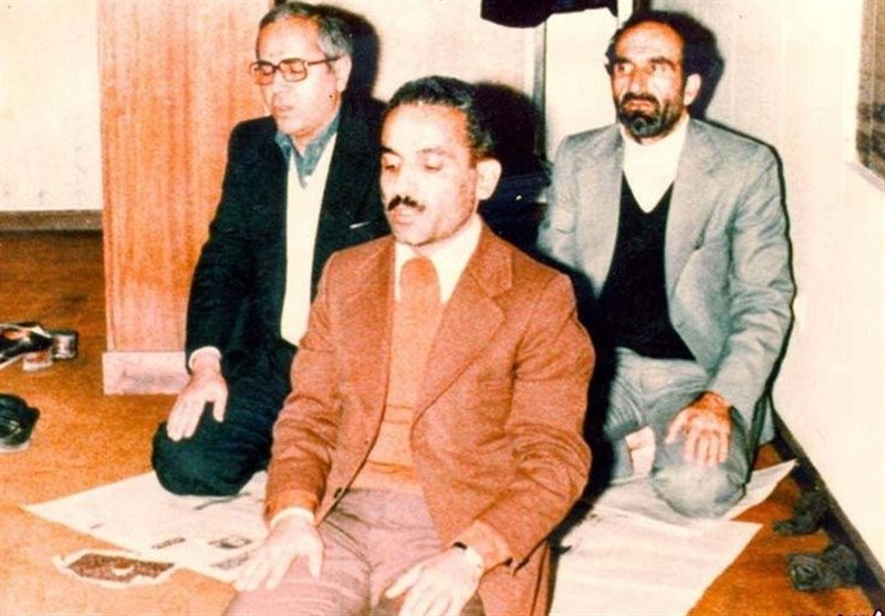 شهید محمدصادق اسلامی پدر دکتر علیرضا اسلامی(نفر اول سمت راست) در حال اقتدا به شهید رجایی